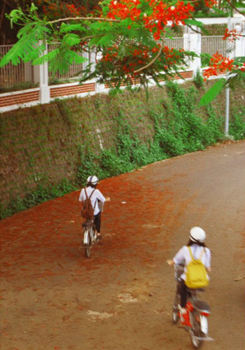 | Mùa hạ hoa phượng rơi đầy. |