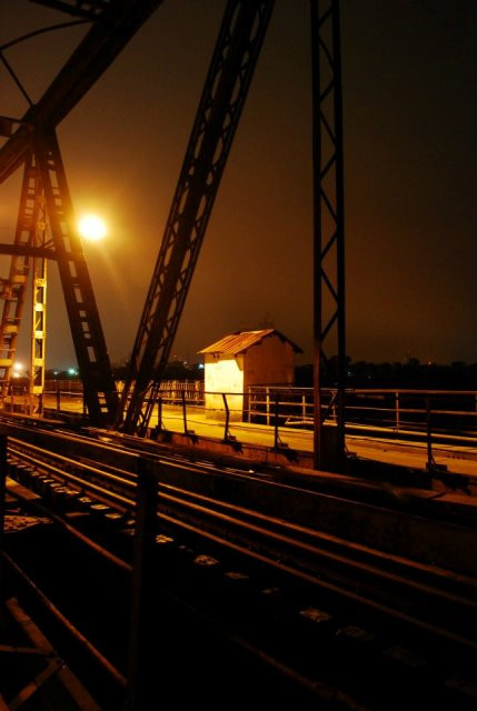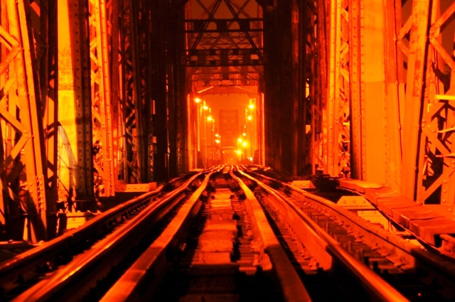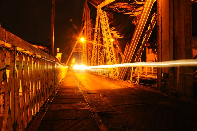 | Chuyến tàu muộn qua cầu Long Biên. |