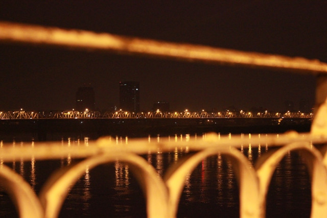 | Cầu Long Biên đẹp lộng lẫy về đêm. |