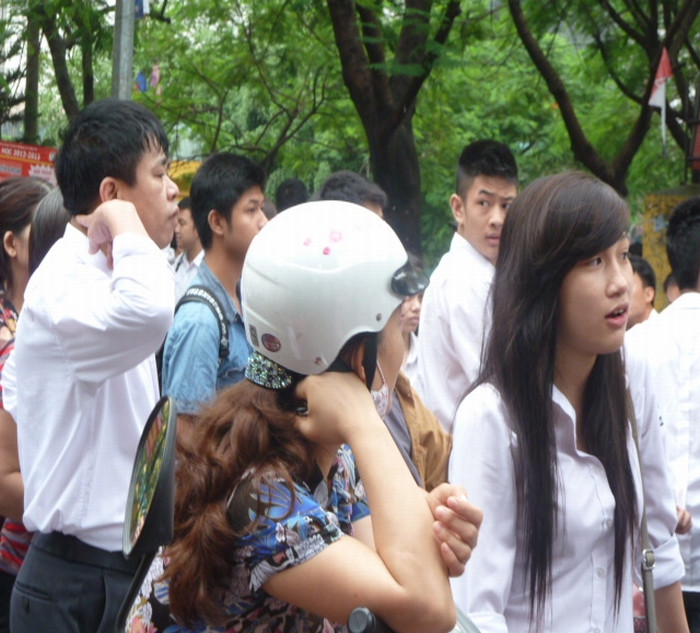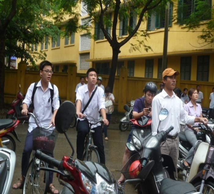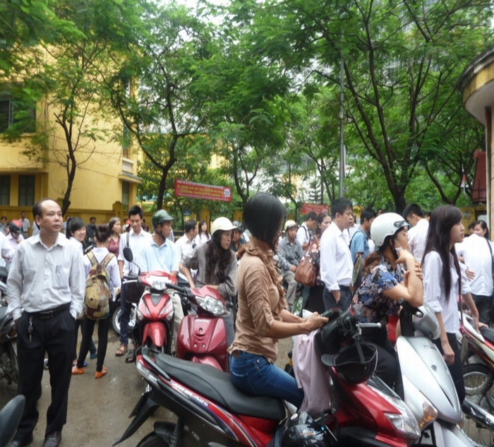 | Còn tại Trường THPT chuyên Hà Nội -Amsterdam nhiều bậc phụ huynh đến từ rất sớm và khá lo lắng bồn chồn vì đây là môn thi đầu tiên, thời gian kéo dài 2,5 tiếng. |