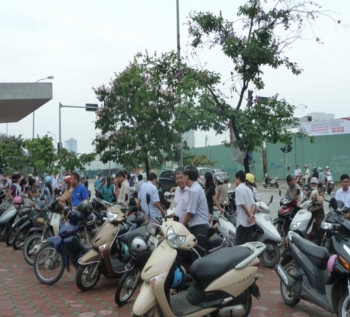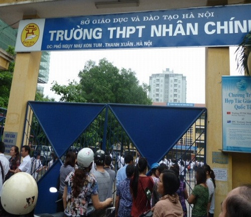 | Taị điểm Trường THPT Nhân Chính, từ 6h15 – 6h30, nhiều phụ huynh, học sinh đứng chờ ở trước cổng trường lo lắng vì con mình không được vào trong. Lúc này, nhà trường đang tiến hành lễ khai mạc. |