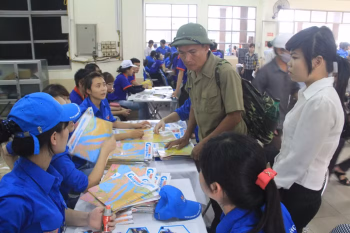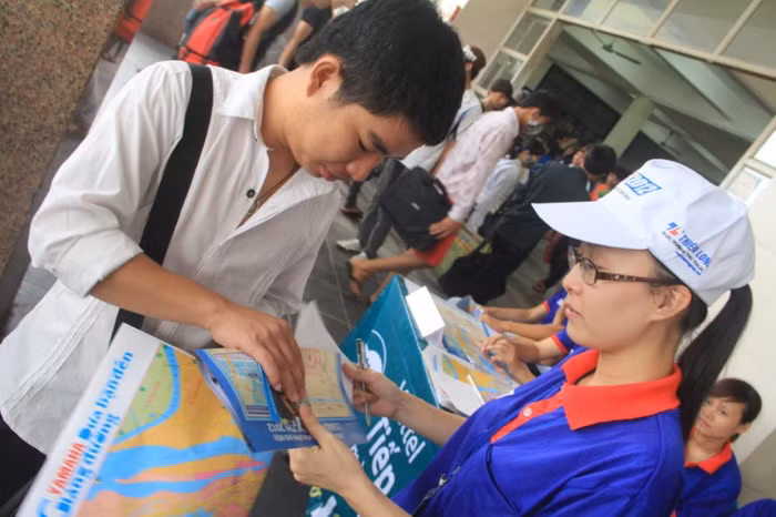 | Những thí sinh tự do chủ động tìm đến các bàn tư vấn của sinh viên tình nguyện các trường. |