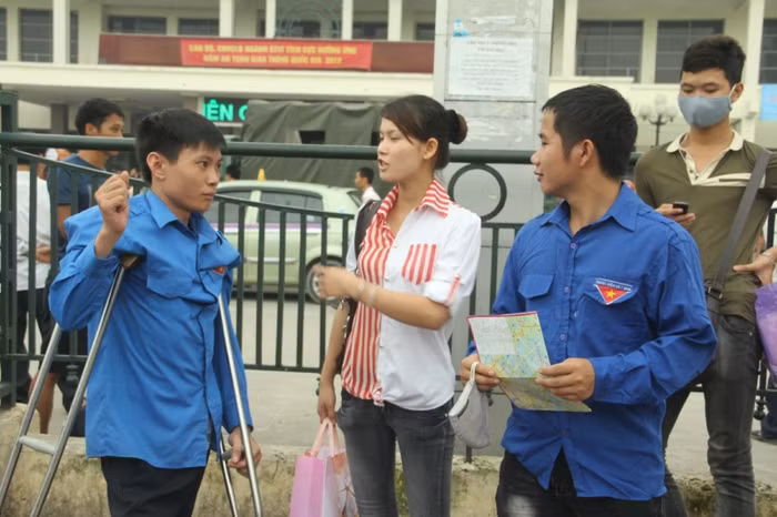 | Tại các BX, lực lượng sinh viên tình nguyên luôn có mặt kịp thời và chủ động giúp thí sinh xách đồ. |