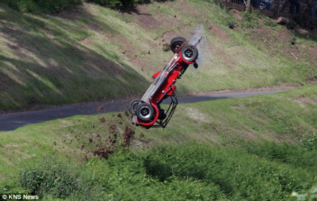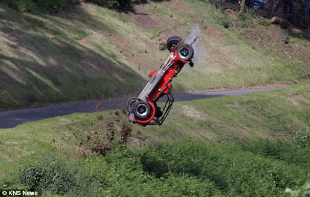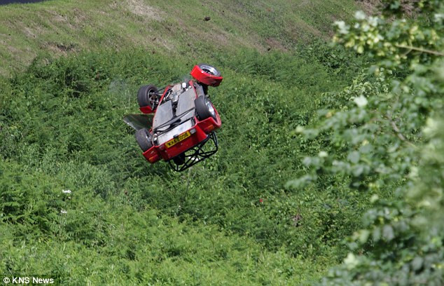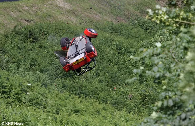 Tay đua Richard Price, 52 tuổi, chỉ bị thương nhẹ ở phần ống chân sau khi chiếc thể thao Caterham Seven của ông bị mất lái chệch khỏi đường đua và lộn 6 vòng, trước khi ‘hạ cánh’ xuống sườn núi. Vụ tai nạn kinh hoàng xảy ra khi ông tham gia cuộc đua Lotus Seven Club Championship ở at Shelsley Walsh Hill Climb, Anh.