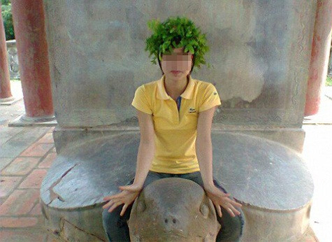 | Cưỡi lên cổ cụ rùa, hai thiếu nữ này còn hồn nhiên tạo dáng xì teen |