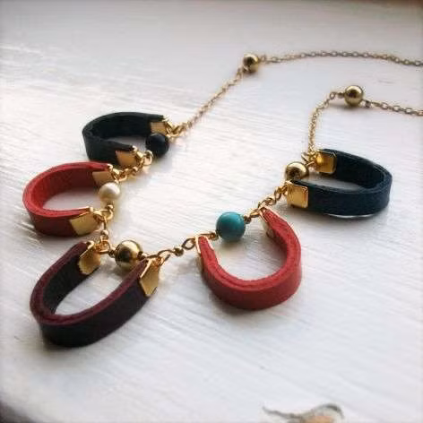 | Chất liệu da không chỉ để tạo nên giày dép hay áo khoác nữa mà còn được ứng dụng trong những mẫu trang sức |