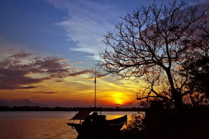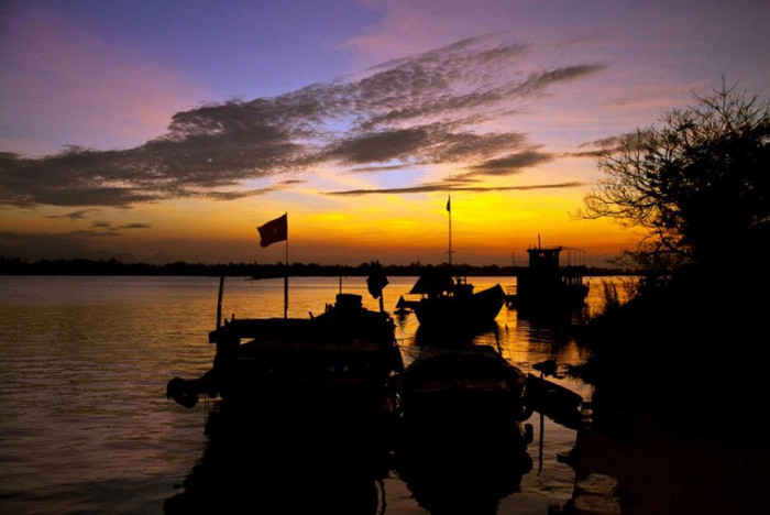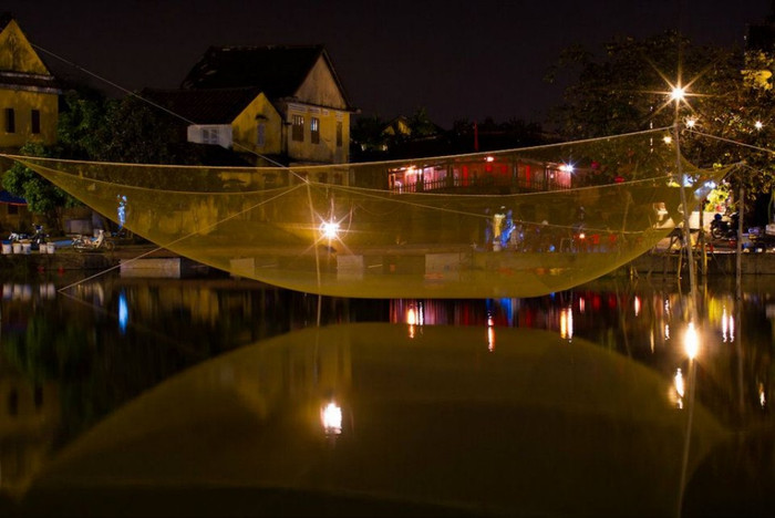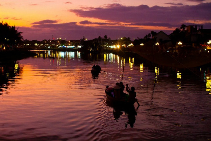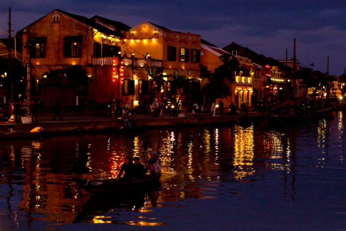 | Một góc nhìn từ chùa Cầu, sông Thu Bồn lung linh trong ánh đèn |