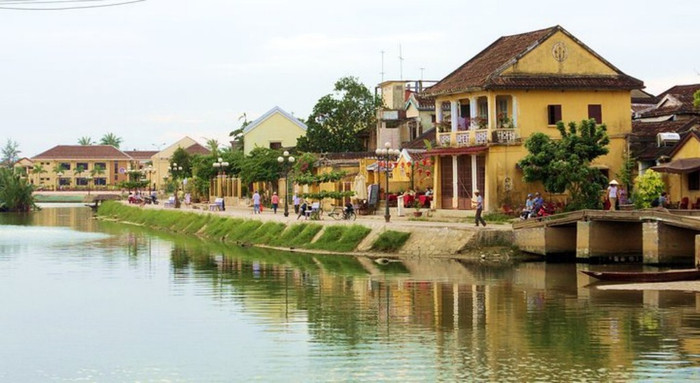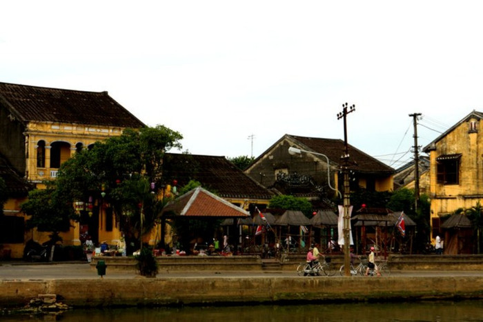 | Dãy nhà cổ bên dòng sông nước xanh tươi mát |