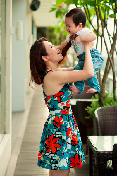 | Hai mẹ con nữ diễn viên ngập tràn hạnh phúc trước ống kính máy ảnh |