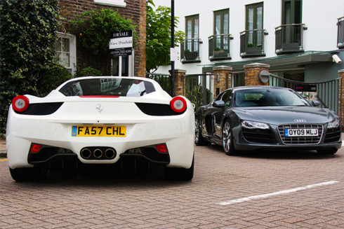 Dù là "tình tứ" sánh đôi hay "lạnh lùng" lướt qua nhau trên phố thì sự xuất hiện cùng lúc 2 siêu phẩm tốc độ cũng gây ấn tượng mạnh.