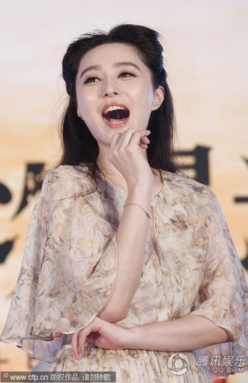 Ngày 20/9 vừa qua, Phạm Băng Băng cùng đoàn làm phim 'Hai lần lộ diện' đã có buổi họp báo ra mắt khán giả tại Thương Hải. Diện bộ váy thướt tha hoạ tiết hoa văn tông màu nhẹ nhàng kết hợp mái tóc xoăn gợi cảm, Phạm Băng Băng thực sự ghi điểm với báo giới lẫn người hâm mộ về vẻ đẹp kiêu sa, đài các của mình. Đặc biệt tại buổi họp báo, cô tỏ ra rất vui vẻ với các kiểu biểu cảm trên gương mặt khi thì phụng phịu, khi thì tươi cười, chu môi, liếc mắt, ôm má... trông vô cùng đáng yêu.