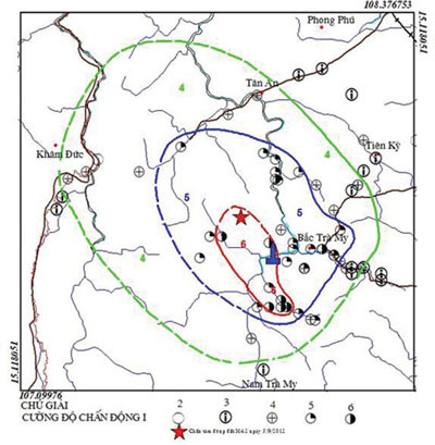Tổng hợp số liệu ghi được tại các trạm địa chấn quốc gia và các số liệu máy gia tốc đặt ở khu vực đập thủy điện Sông Tranh 2 cho thấy, từ ngày thủy điện này tích nước cho đến ngày 7.9.2012 đã ghi nhận được 59 trận động đất ở khu vực H.Bắc Trà My và lân cận. Các nhà khoa học lưu ý trong thời gian tới, tại khu vực này, động đất kích thích vẫn tiếp tục xảy ra, thậm chí có thể mạnh hơn, nhưng khó có thể vượt quá giá trị động đất cực đại đã đánh giá (5,5 độ Richter).
