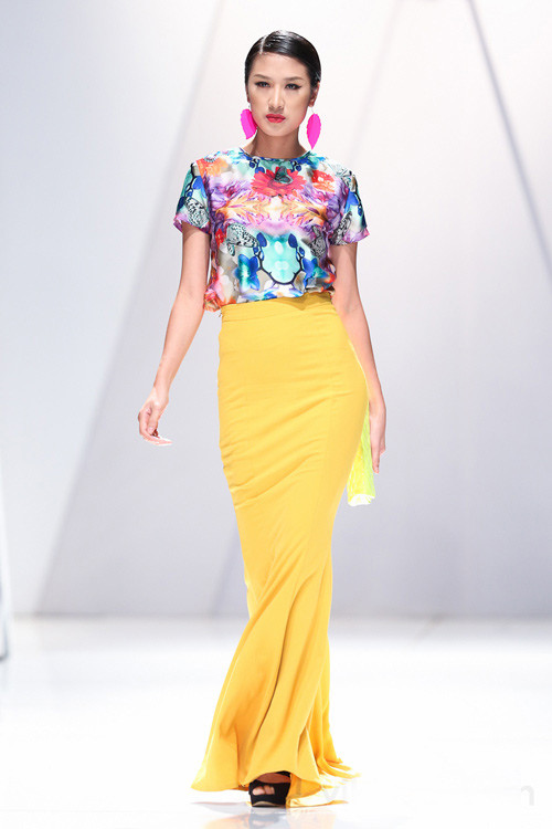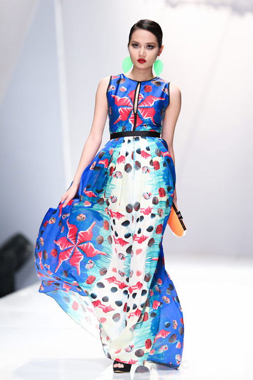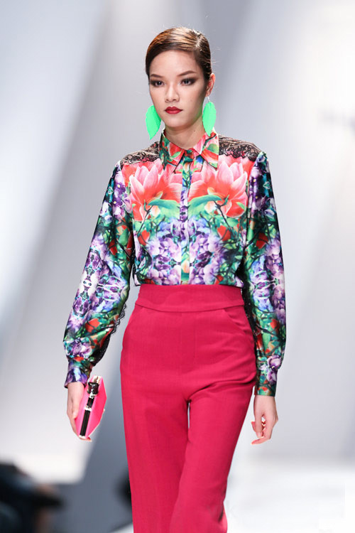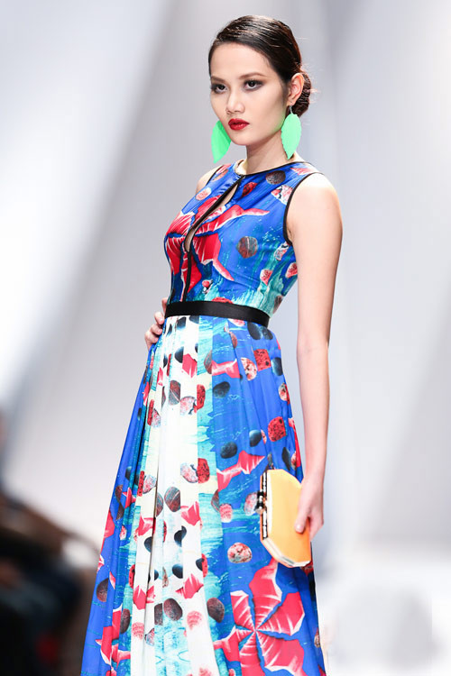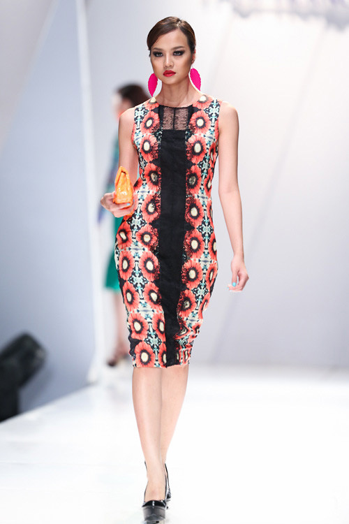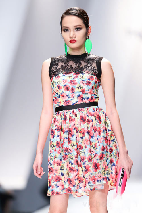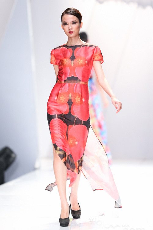 | Sắc hoa quyến rũ và thu hút trong sải bước của người mẫu Thùy Dương. |