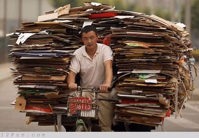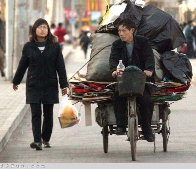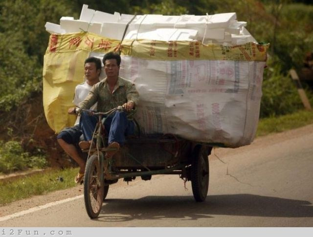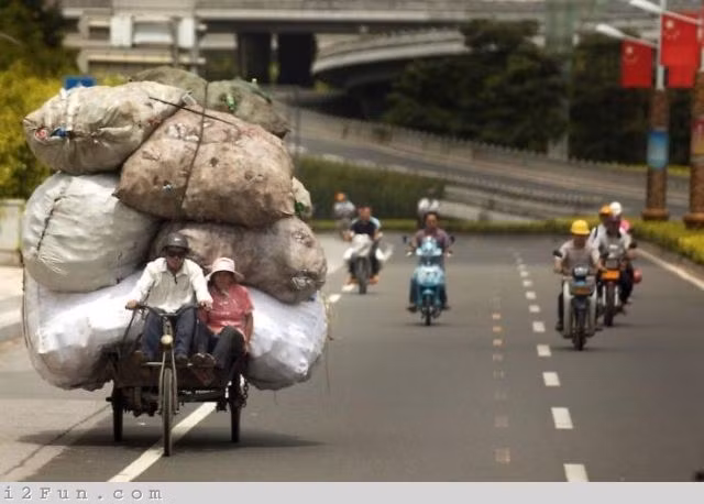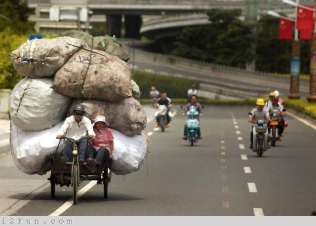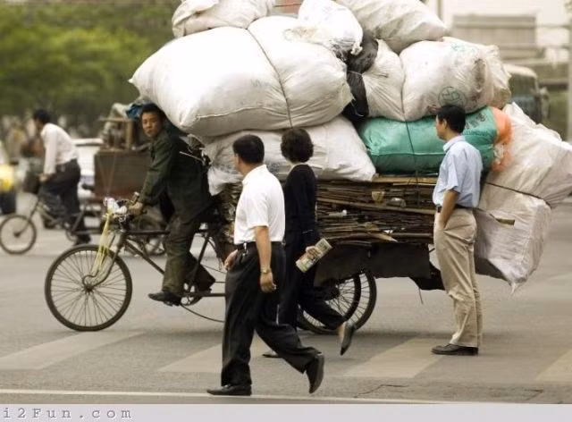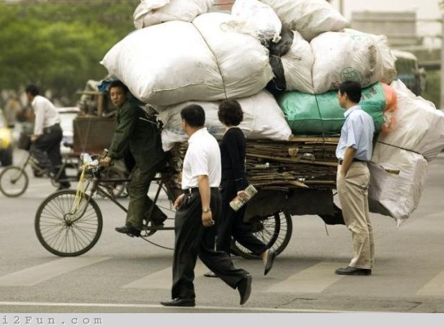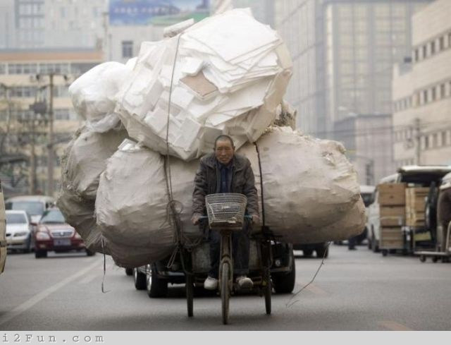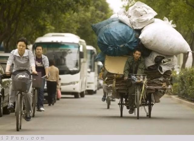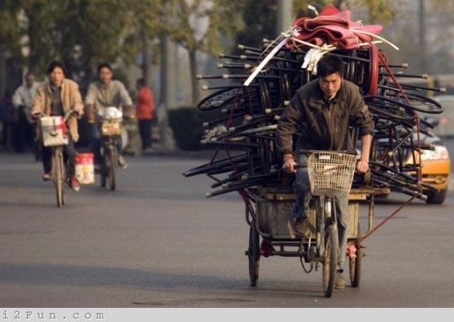 (GDVN) - Chỉ với một chiếc xe đạp cũ kỹ những "transporter" đến từ Trung Quốc này có thể chở cả một núi đồ.