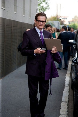 | Biên tập viên thời trang Anna Dello Russo cá tính với áo khoác tím phá cách. |
