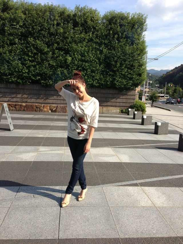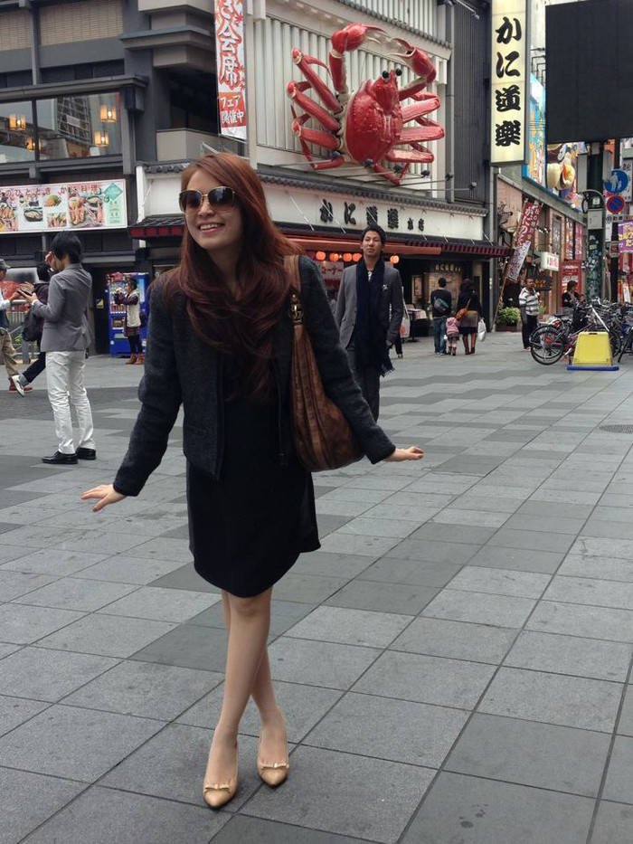 | Bức ảnh này được Hoàng Thùy Linh chú thích: "Ngày đầu đến Osaka". |