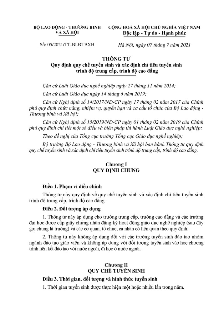 | Ảnh chụp Thông tư 05/2021 của Bộ Lao động – Thương binh và xã hội. |