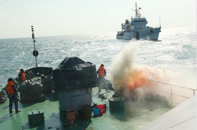 | Trung Quốc khủng bố ngư dân Việt Nam ở vùng biển chủ quyền của Việt Nam: đâm chìm, bắn cháy tàu cá, cướp đoạt tài sản đánh bắt được của ngư dân Việt Nam... (ảnh tư liệu năm 2014) |