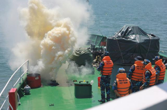 | Ngày 30 tháng 8 năm 2015, Cảnh sát biển Việt Nam và Ấn Độ tổ chức huấn luyện chung ở Vũng Tàu |