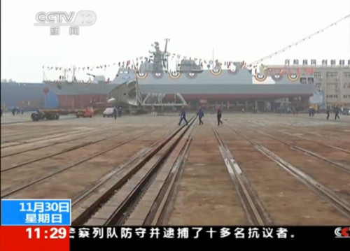 Kiến trúc sư trưởng tàu hộ vệ mới Tôn Liên Phi, Viện 701 của Tập đoàn công nghiệp nặng tàu thủy Trung Quốc cho biết, sau khi hạ thủy, tàu chiến sẽ tiến hành lắp ráp các loại thiết bị đường ống cố định, sau đó, tiến hành chạy thử tại bến tàu, 6 tháng sau chạy thử trên biển.