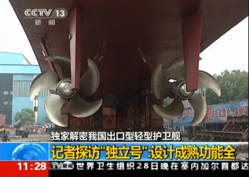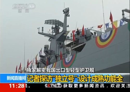 Trang mạng Đài truyền hình CCTV Trung Quốc ngày 1 tháng 12 cũng có bài viết cho hay, ngày 30 tháng 11, Tập đoàn công nghiệp nặng tàu thủy Trung Quốc (CSIC) tuyên bố tàu hộ vệ Độc Lập phiên bản mới nhất Trung Quốc xuất khẩu cho Bangladesh hoàn thành hạ thủy. Đây là chiếc tàu hộ vệ hạng nhẹ hiện đại đầu tiên trong số 2 chiếc mà Hải quân Bangladesh đặt mua.