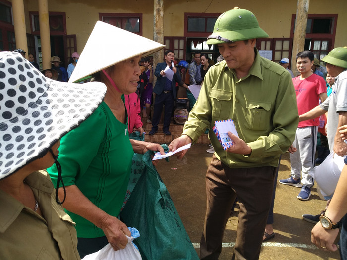 Ông Nguyễn Ngọc Quyết - Tổng Biên tập Tạp chí điện tử Hòa Nhập trao những món quà đến tận tay người dân và chia sẻ: “Những ngày qua, nhân dân miền Trung đặc biệt là vùng Quảng Bình chịu ảnh hưởng nặng nề về cả vật chất và tinh thần. Với tinh thần nhường cơm sẻ áo, tất cả sự ủng hộ đều trên tinh thần tự nguyện, bằng cả tấm lòng tương thân, tương ái, đầy trách nhiệm tình cảm sẻ chia của các tổ chức, cá nhân, các doanh nghiệp đối với đồng bào miền Trung đang bị lũ lụt. Hy vọng rằng, với món quà nhỏ này sẽ một phần nào đó giúp đỡ bà con ổn định lại cuộc sống sau lũ”.