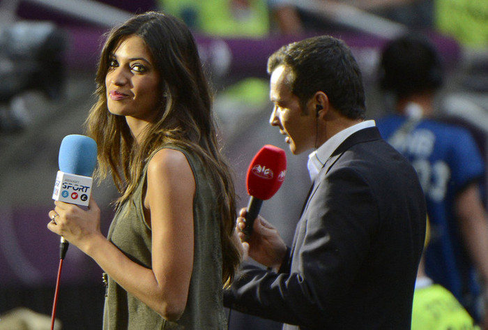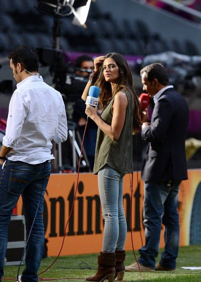 | Sara Carbonero luôn mặc những trang phục thoáng mát và gợi cảm khi tường thuật các trận đấu của Tây Ban Nha tại EURO 2012 |
