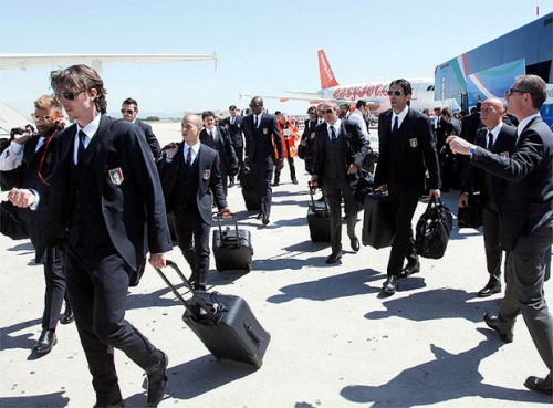 | ĐT Italia tạo dáng để chụp hình trước khi lên máy bay. |