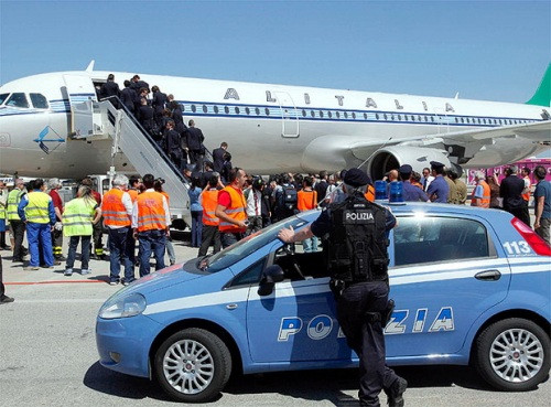 | ĐT Italia tới sân bay Pisa, nơi họ sẽ cất cánh sang Ba Lan. |