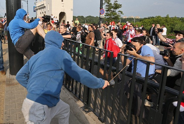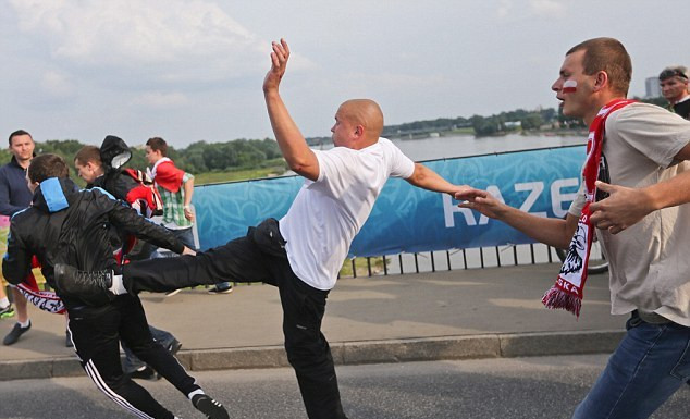 | Một fan hâm mộ Nga và Ba Lan đánh nhau trong cuộc bạo lực |