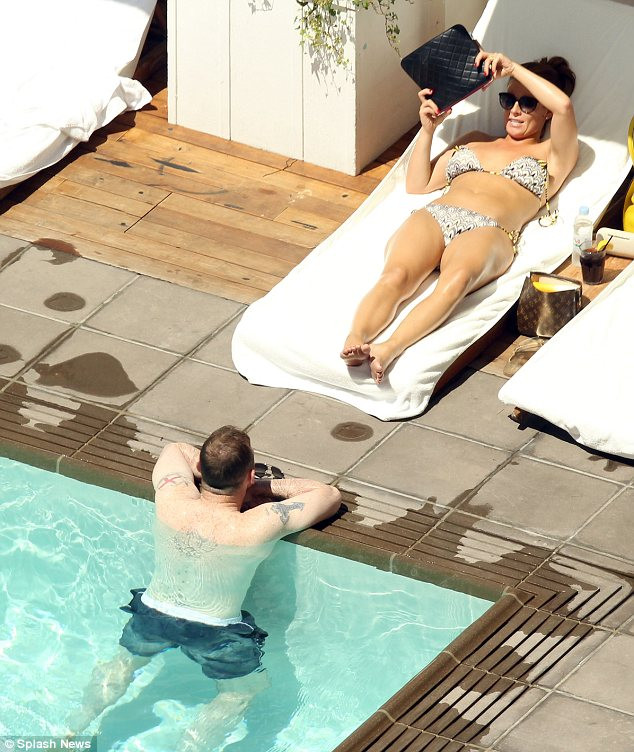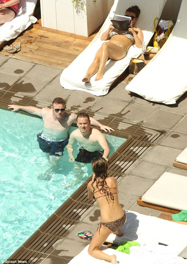 | Rooney cùng vợ tắm nắng thư giãn bên cạnh bể bơi trong một khách sạn sang trọng ở Los Angeles, để quên đi nỗi buồn thất bại tại EURO 2012 |