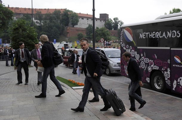 | Rất nhiều fan hâm mộ đã đứng chờ khi xe chở đội tuyển Hà Lan tới khách sạn Sheranton ở Krakow |