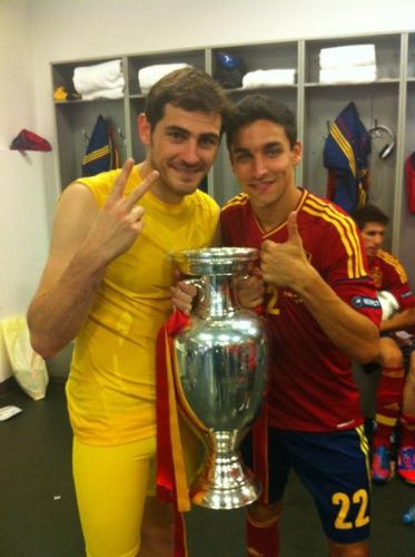 | 3 thủ môn của Tây Ban Nha chụp ảnh cùng nhau trong phòng thay đổ |