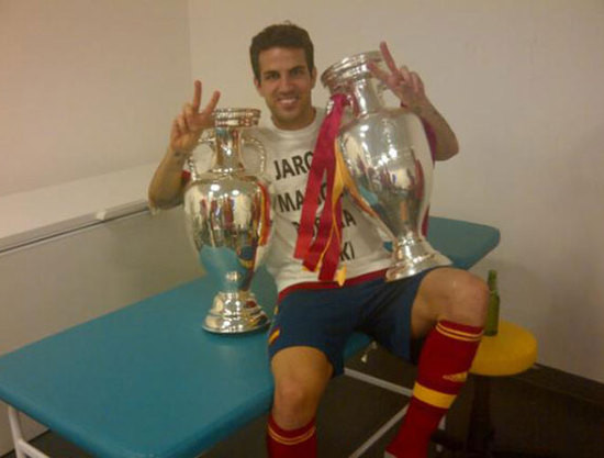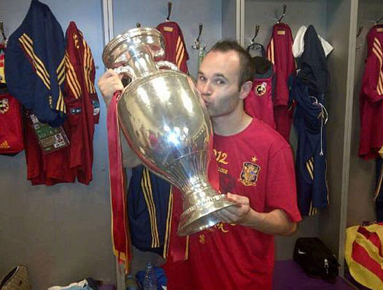 | Iker Casillas chỉ mặc mỗi quần lót chụp ảnh bên cạnh 2 chiếc cúp |