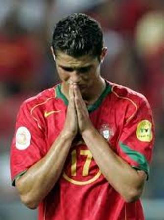 | Những giọt nước mắt của Ronaldo sau trận thua Hi Lạp ở chung kết Euro 2004. |