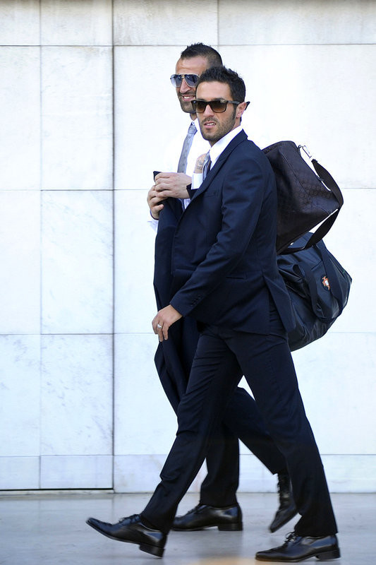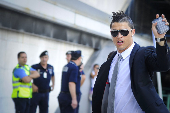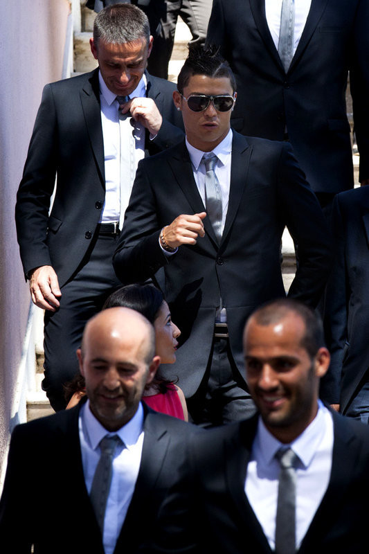 | Cristiano Ronaldo là người nổi bật nhất của đội tuyển BĐN trên đường ra sân bay, với bộ vest và kính chống nắng màu đen lịnh lãm và nam tính |
