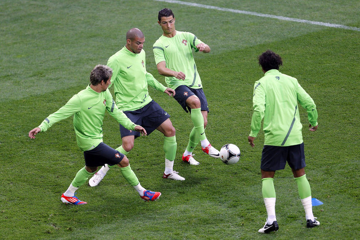 | C.Ronaldo tập luyện cùng các đồng đội ở đội tuyển Bồ Đào Nha |