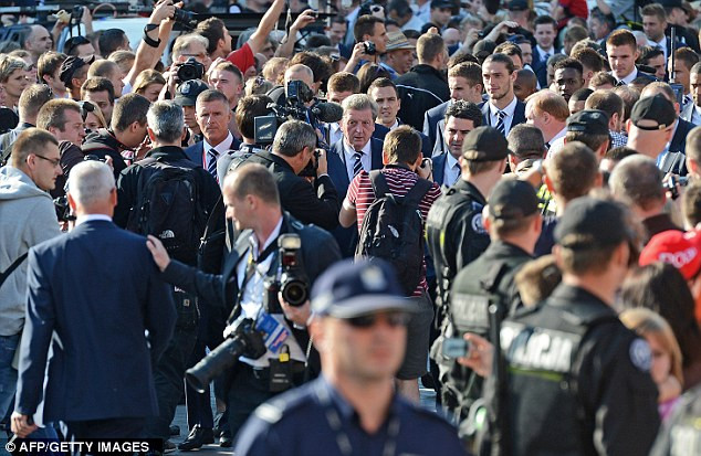 | Trong vòng vây, các tuyển thủ Anh vẫn dõng dạc đi như thể họ là những người anh hùng của Krakow |
