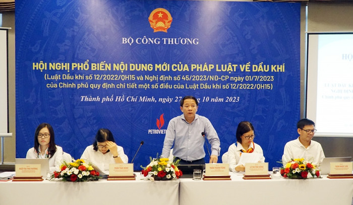 Tại Hội nghị, các đại biểu đã được nghe trình bày khái quát các nội dung, đặc biệt là các điểm mới của Luật Dầu khí số 12/2022/QH15 và Nghị định 45/2023/NĐ-CP ngày 1/7/2023 của Chính phủ quy định chi tiết một số điều của Luật Dầu khí số 12/2022/QH15; đồng thời dành nhiều thời gian để thông tin, giải đáp các vấn đề chưa rõ, vướng mắc của các nhà điều hành, nhà thầu dầu khí.