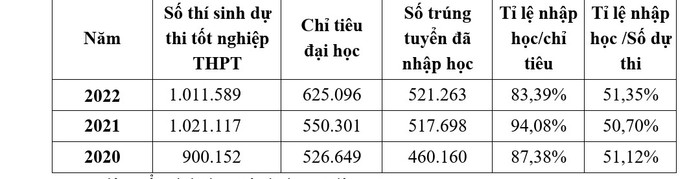 Cụ thể, về kết quả tuyển sinh của các cơ sở đào tạo, tổng số thí sinh nhập học toàn quốc là 521.263 đạt 83,39%, cao hơn số nhập học của năm 2021, 2020.