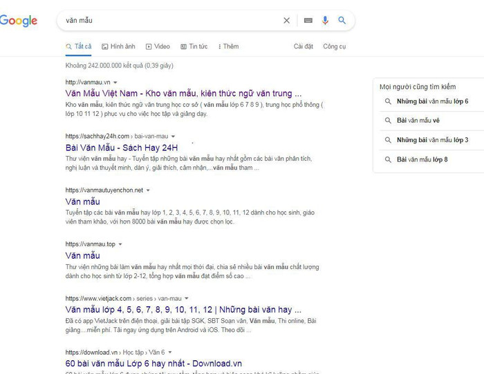 | Ảnh chụp màn hình kết quả tìm kiếm văn mẫu, luận văn trên Google |
