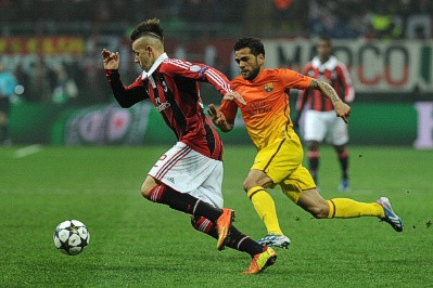 37' Một lần nữa Pedro đòi bóng bên cánh trái và lần này Alves đã chuyền nhưng bóng đi quá sâu về phía cột xa cầu môn Milan và bị phá lên.