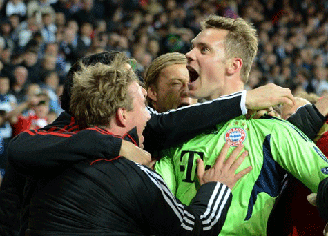 Đúng vào lúc tưởng như mọi hy vọng của Bayern Munich đã tắt ngấm thì Hùm xám được hưởng quả penalty sau 1 pha phạm lỗi lộ liễu của Pepe với Gomez. Trên chấm 11m, người cũ của Real Madrid, Robben đã sút tung lưới Iker Casillas đưa trận đấu về 2 hiệp phụ và loạt sút luân lưu cân não.