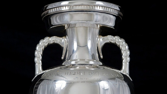 | Chủ tịch UEFA Michel Platini và chiếc cúp vô địch. |