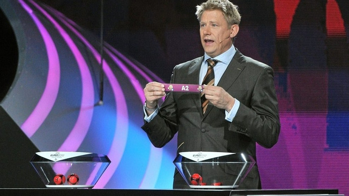 | Các cựu danh thủ với trái bóng chính thức của EURO 2012. |