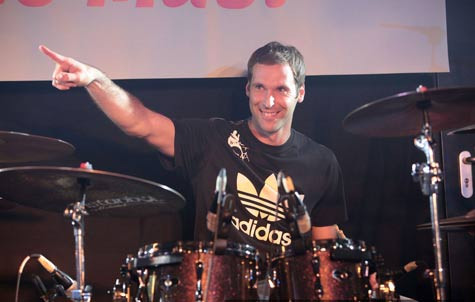Cech chơi nhạc rock. Thủ môn người Czech vừa tham gia vào một ban nhạc có tên Eddie Stoilow chuyên chơi nhạc rock ở CLB Rock Café của thành phố Praha. Xin lưu ý trong bức ảnh thứ hai là người phụ nữ tóc vàng mà Cech đang dùng tay trái để “làm gì đó” là vợ anh, cô Martina, chứ không phải fan hâm mộ nào.
