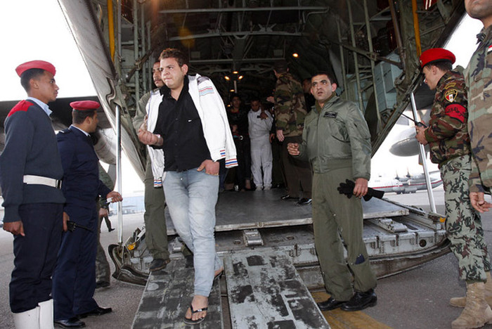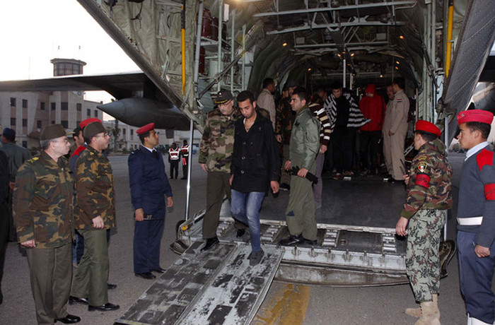 | Những người bị thương được đưa lên máy bay để chở tới bệnh viện tại Cairo |