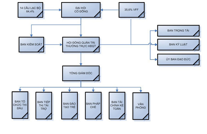 Cơ quan quyền lực cao nhất của Công ty VPF là Đại hội cổ đông. Các cổ đông bầu HĐQT, từ 9 đến 11 thành viên trong đó đảm bảo số thành viên đại diện VFF và số thành viên đại diện các câu lạc bộ theo tỷ lệ 35/65. Trong trường hợp cần thiết có thể thành lập thường trực HĐQT từ 3 – 5 thành viên.