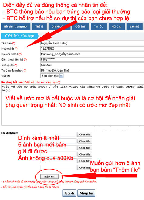 2) Gửi ảnh từ website chính thức cuộc thi Nữ sinh trong mơ 2013