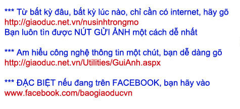 * BẤM VÀO ĐÂY để gửi ảnh dự thi ngay, hoặc vào trang www.facebook.com/baogiaoducvn để gửi ảnh từ facebook.